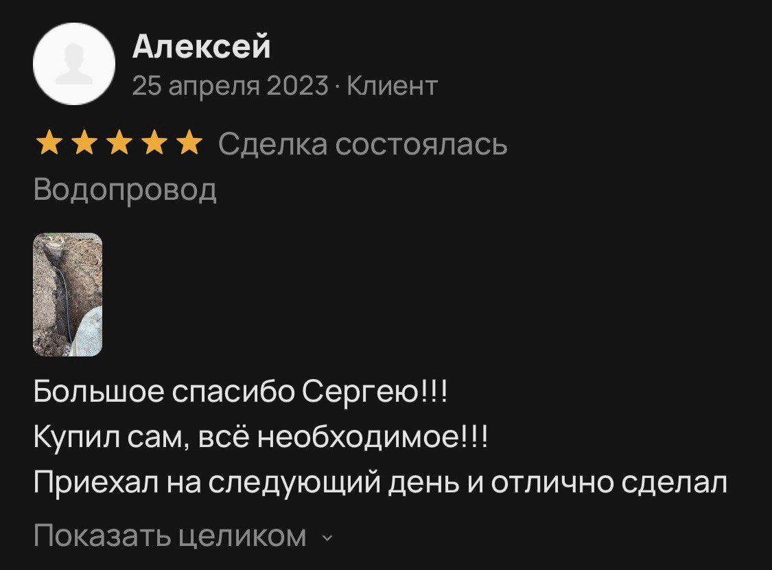 Монтаж водопровода с установкой колодца и ЛОС Малахит